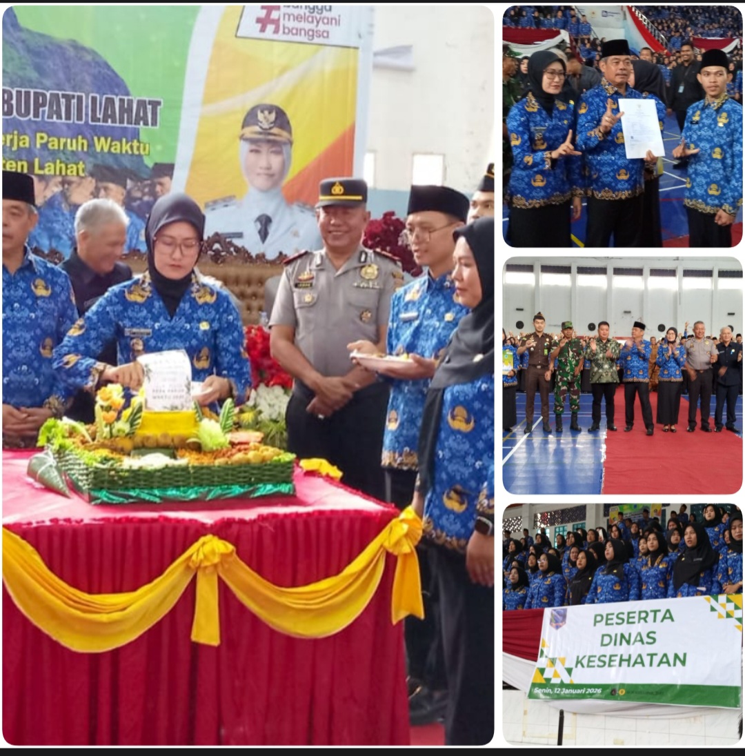 Sebanyak 2.785 Pegawai Pemerintah dengan Perjanjian Kerja (PPPK) Paruh Waktu resmi menerima Surat Keputusan (SK) pengangkatan dari Pemerintah Kabupaten Lahat. Penyerahan SK tersebut dilakukan langsung oleh Bupati Lahat, Bursah Zarnubi, bertempat di Gedung Olahraga Bukit Tunjuk, Senin (12/01/2026).
